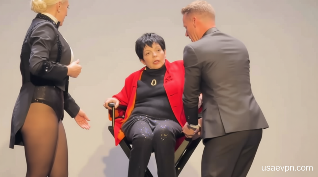 As the performance reached its climax, Minnelli emerged in a dramatic entrance, seated in her director’s chair. Dancers executed Fosse-inspired routines to the iconic song Wilkommen, setting the stage for her appearance. However, the celebratory moment was disrupted by her verbal lapses. When asked about her stage and film history, she broke into a sudden, high-pitched laugh and later seemed to confuse her audience with unexpected responses.